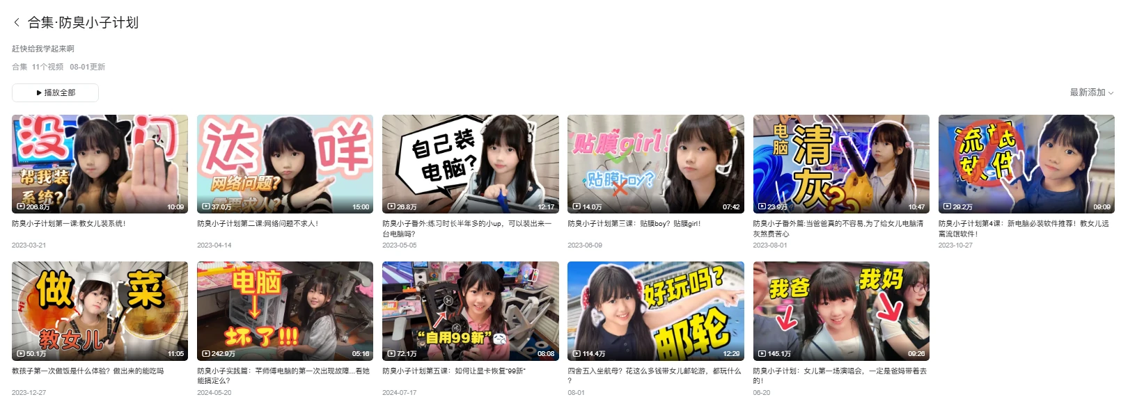 来自于up主芊芊老猫的日常,通过教小学的女儿装电脑系统、解决电脑网站问题、清灰等等日常会遇到的问题展开的系列视频,视频不是单纯的讲操作更会延申到具体的场景和注意事项,并且视频十分有意思,属于是“寓教于乐”的形式了;这个系列其实就6篇是有关电脑的,以及视频信息密度其实不高,我推荐更多的原因是“容易”看。